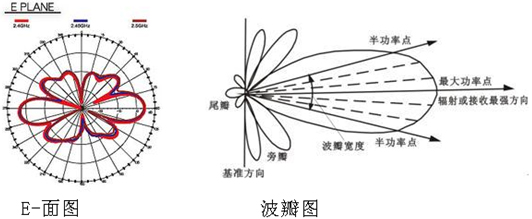 為了簡化對天線剖面的理解,天線廠商提供了天線輻射圖。天線輻射圖有不同的格式,如E面圖(E plane plot)和波瓣圖(polar plot):